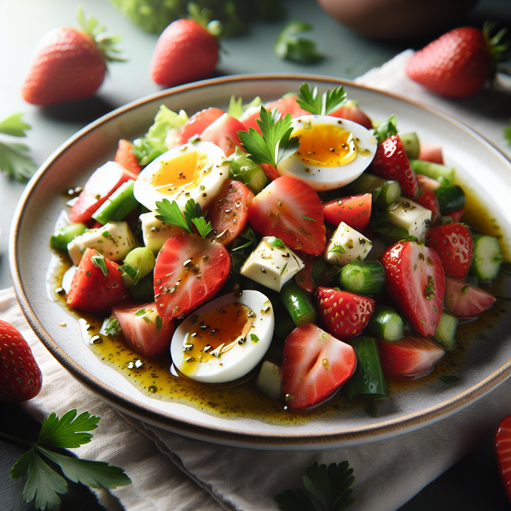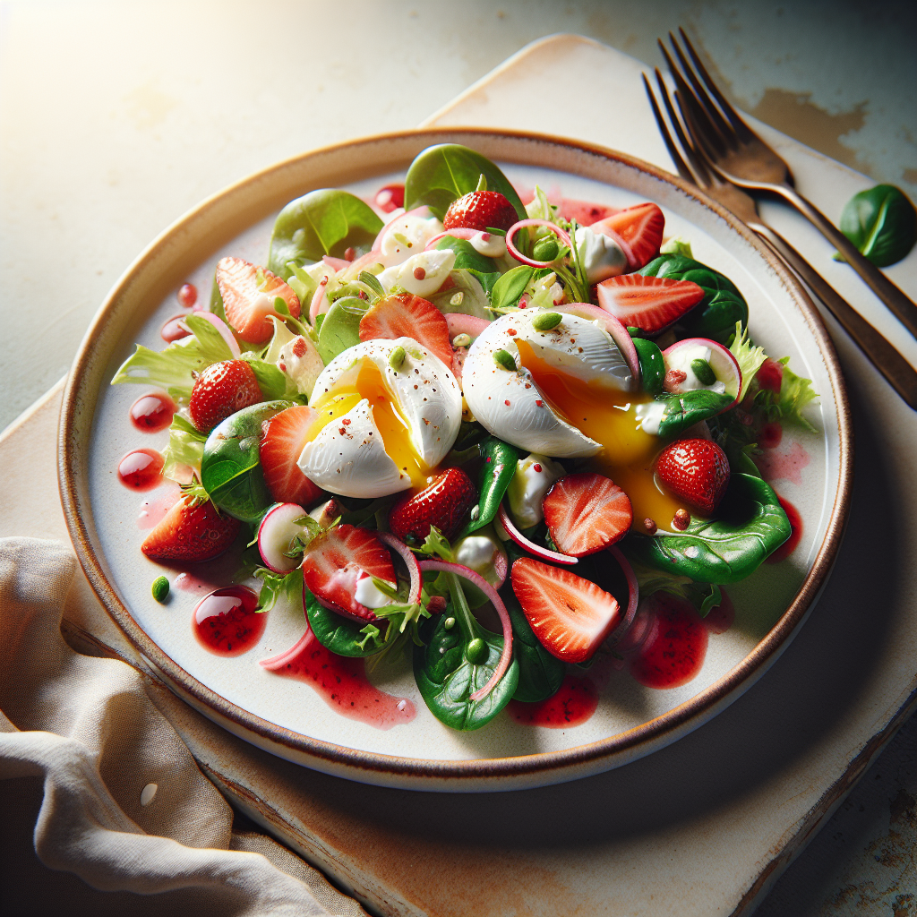 Salada Fresca de Verão com Ovos Pochê e Vinagrete de Morango