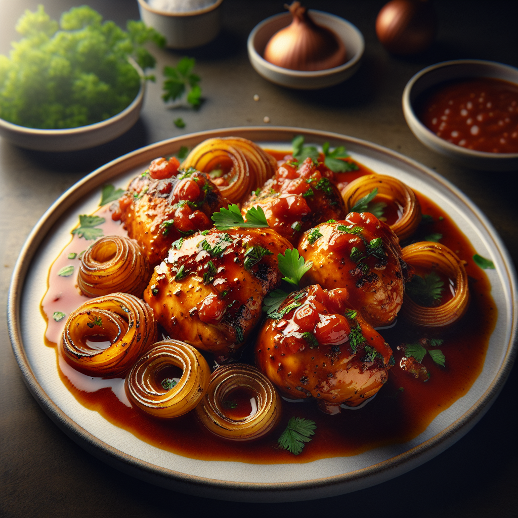 Frango à Brasileira com Molho Rico de Tomate e Cebola Caramelizada