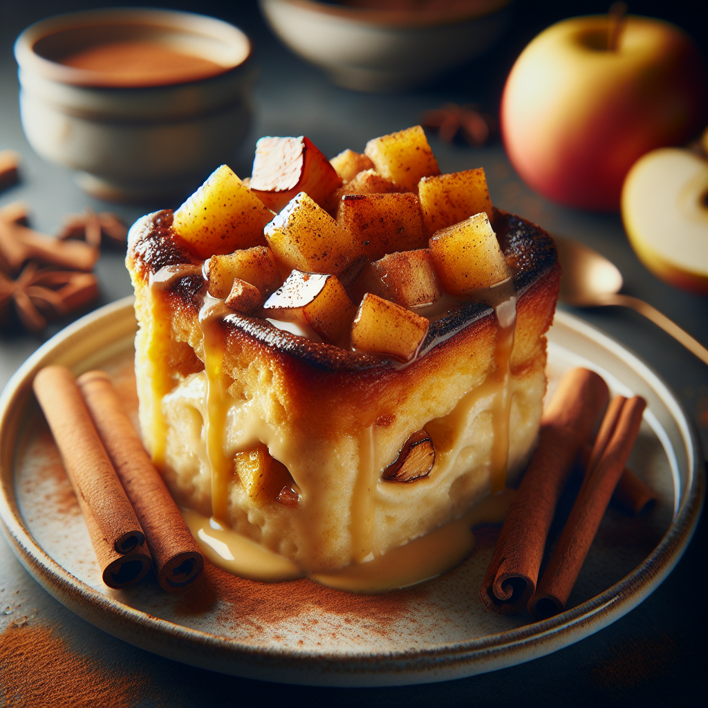 Spiced Apple & Brioche Bread Pudding with Cinnamon Crème Anglaise