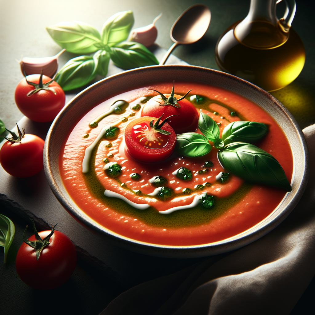 Creamy Tomato & Garlic Soup with Basil Oil